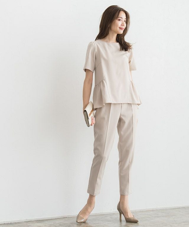 パンツ:着丈は足首上の丈感です。フラットシューズも着用でき、すっきりと見える丈感です。