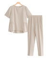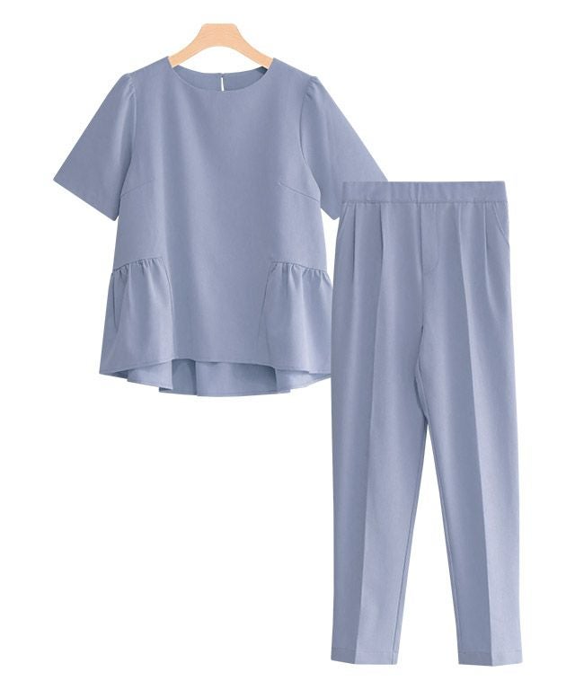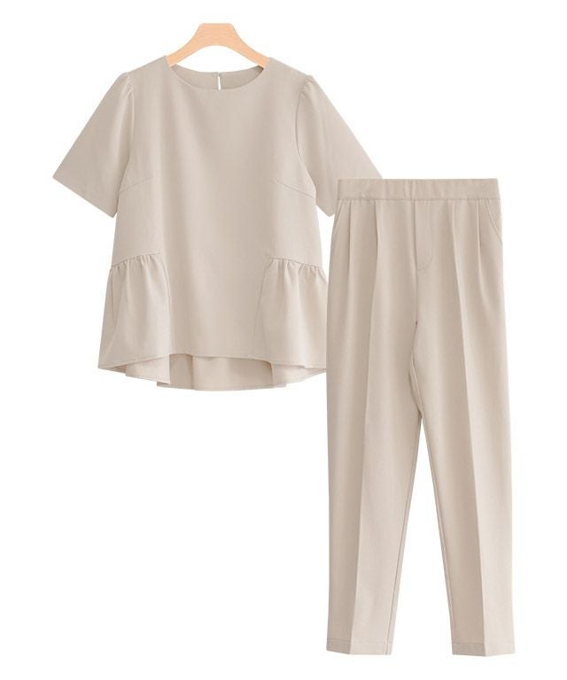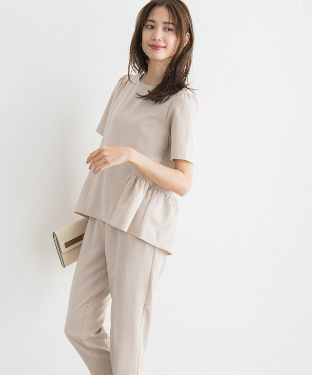 裾のフレアで女性らしさを“フレア切り替え半袖セットアップ”