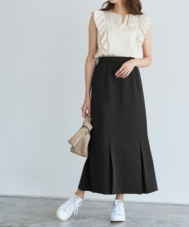 女性らしいスタイリングが仕上がる“タックマーメイドスカート”