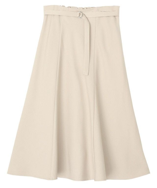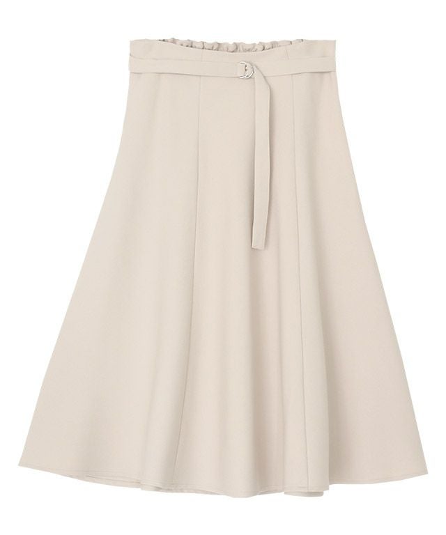 裾に向かって自然に広がるフレアシルエットが女性らしいスカート。バックル付きのベルトが上品なアクセントに◎前のウエストはすっきりとし、後ろはゴムなので窮屈感なく着用できます。