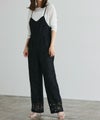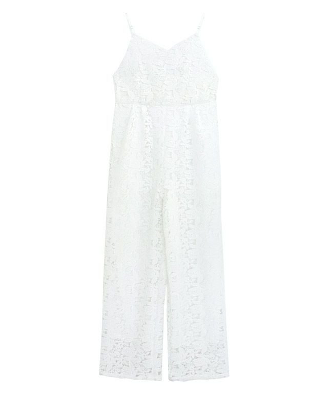厚みとハリ感のあるレース素材を使用することで綺麗なシルエットをキープ。大振りの花柄レースが女性らしさ溢れるオールインワンです。