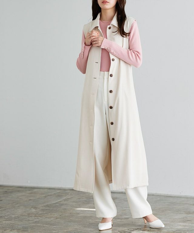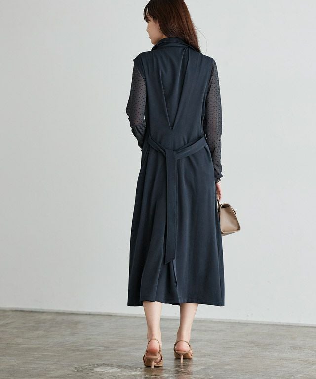 トレンチコート、ジレ、ブルゾン、ノースリーブワンピースとして着用できるマルチway仕様。足元まであるロング丈と、程よくボリュームを持たせた袖シルエットがこなれた印象に導きます。ボタンをマーブルにすることでアクセントとなり、さらっと羽織るだけでサマになる一枚です。付属のベルトでウエストマークができ、様々な着こなしができるところもポイントです。