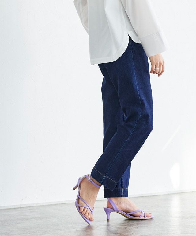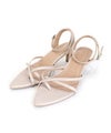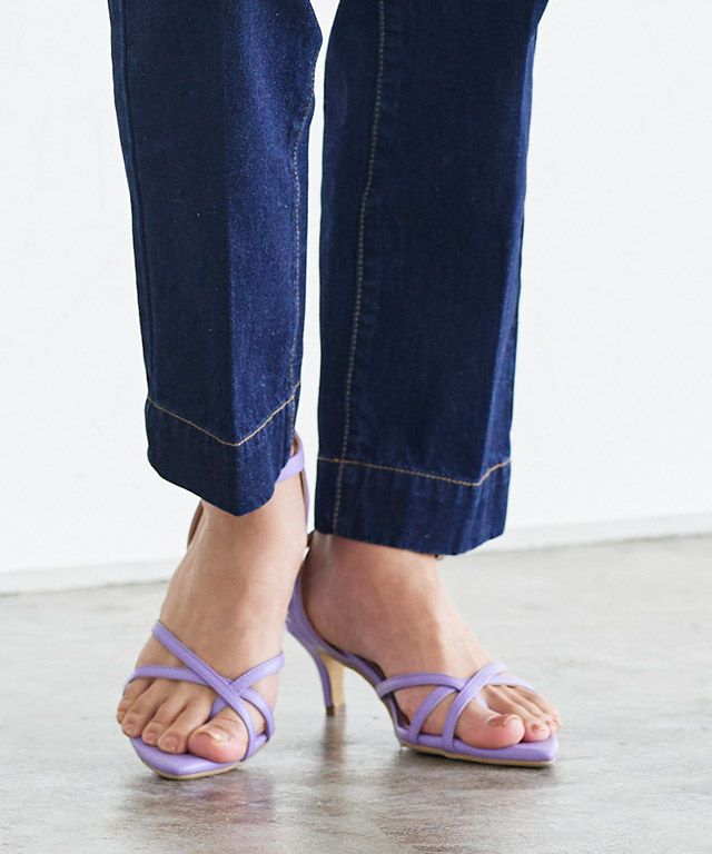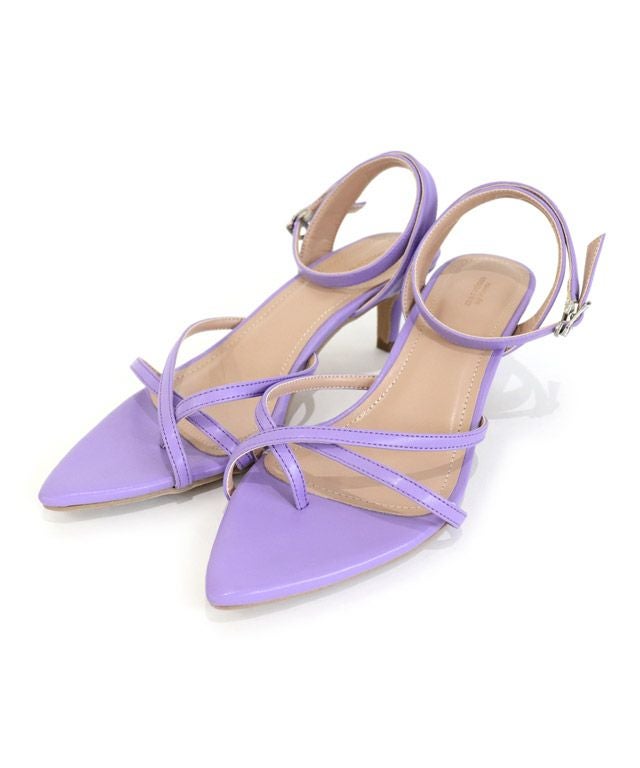 ポインテッドトゥデザインにトングの華奢ストラップが女性らしい印象で、こなれた雰囲気に導いてくれる一足。ほど良い高さのヒールに、アンクルのストラップで安定感があるため、歩きやすいところも嬉しいポイントです。