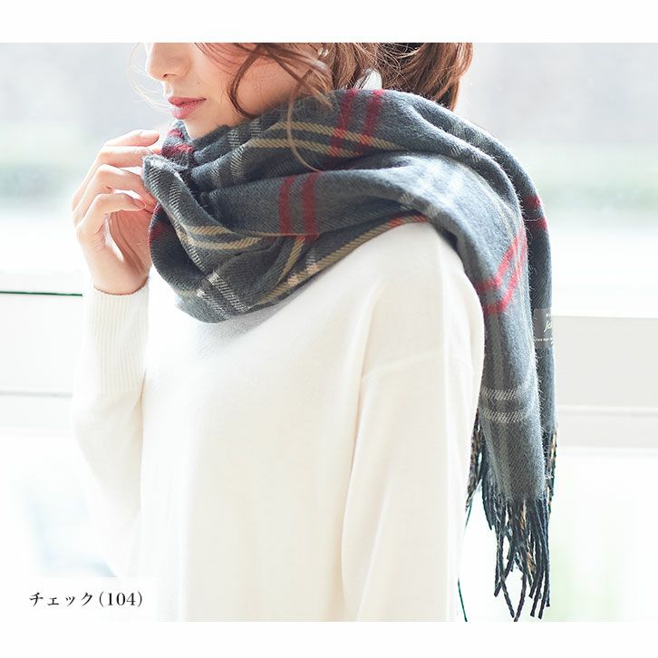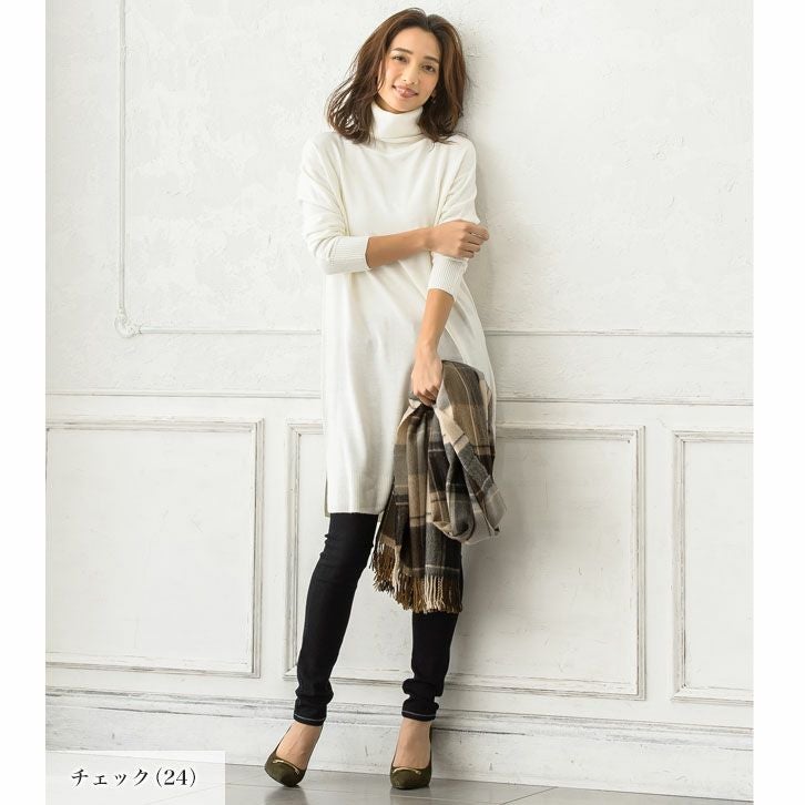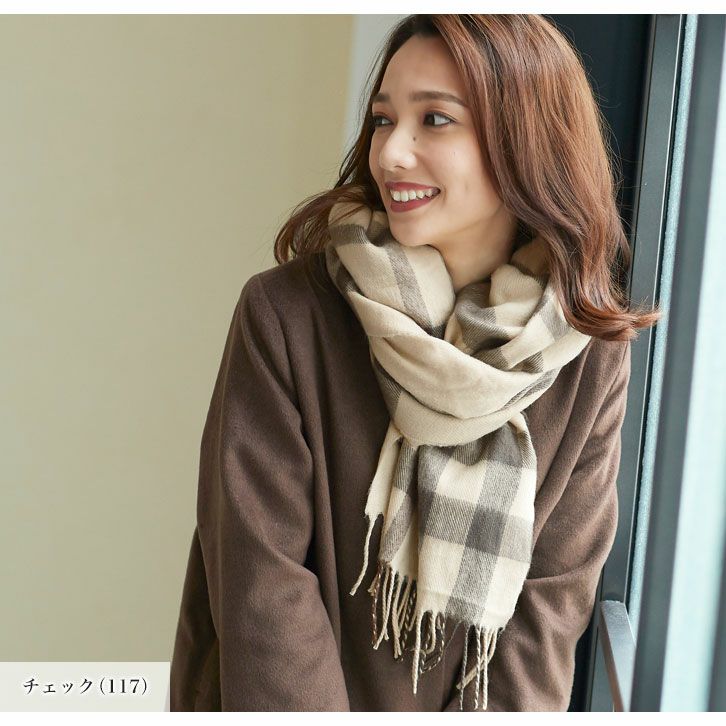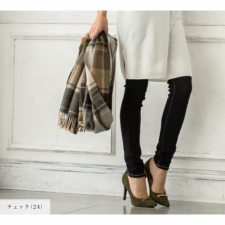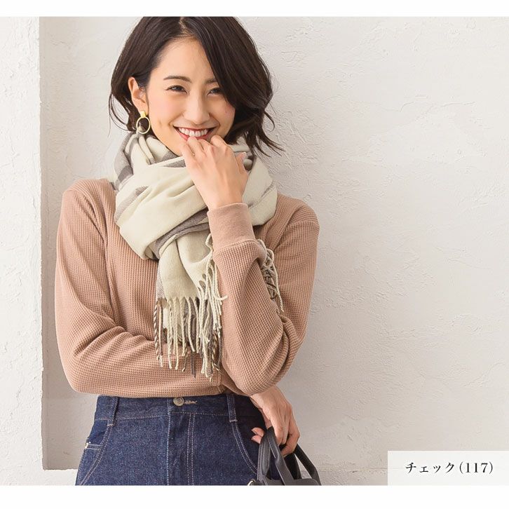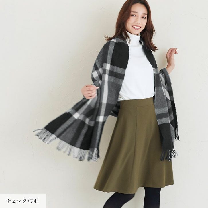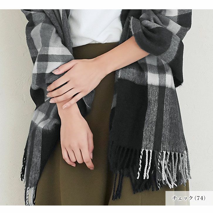 大判チェック柄フリンジストール