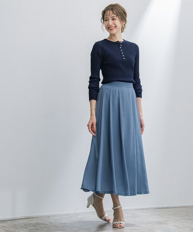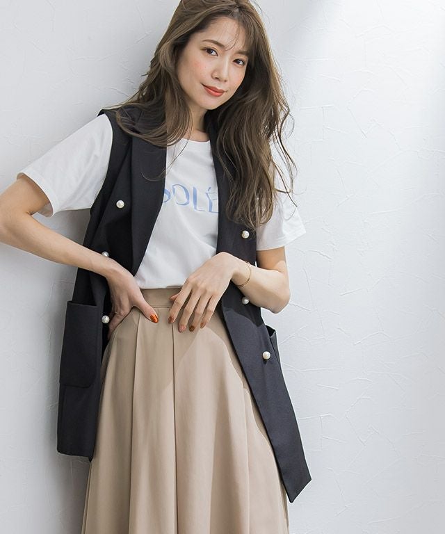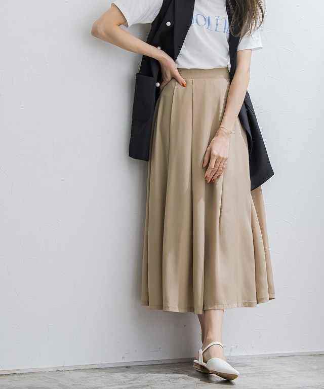 フロント部分のタックが穿くだけで自然なドレープを描き、ふんわりとしたシルエットが女性らしさ溢れる一枚◎