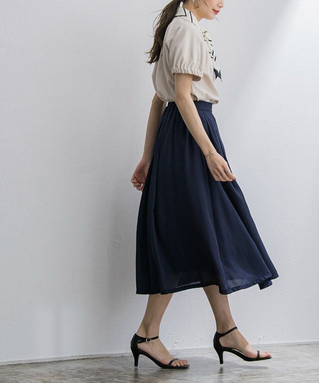 大人の上品さ漂う“裏地付きシフォンフレアスカート”