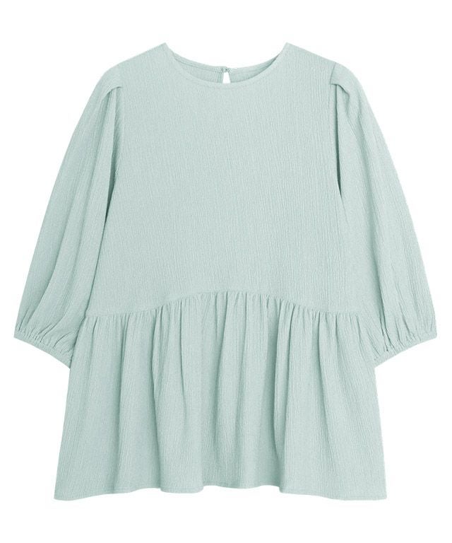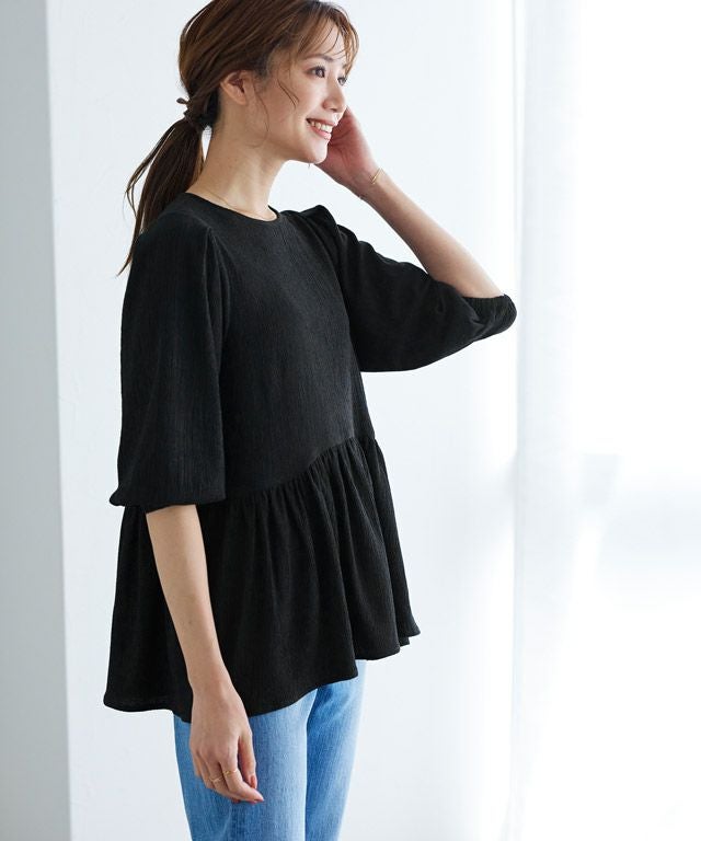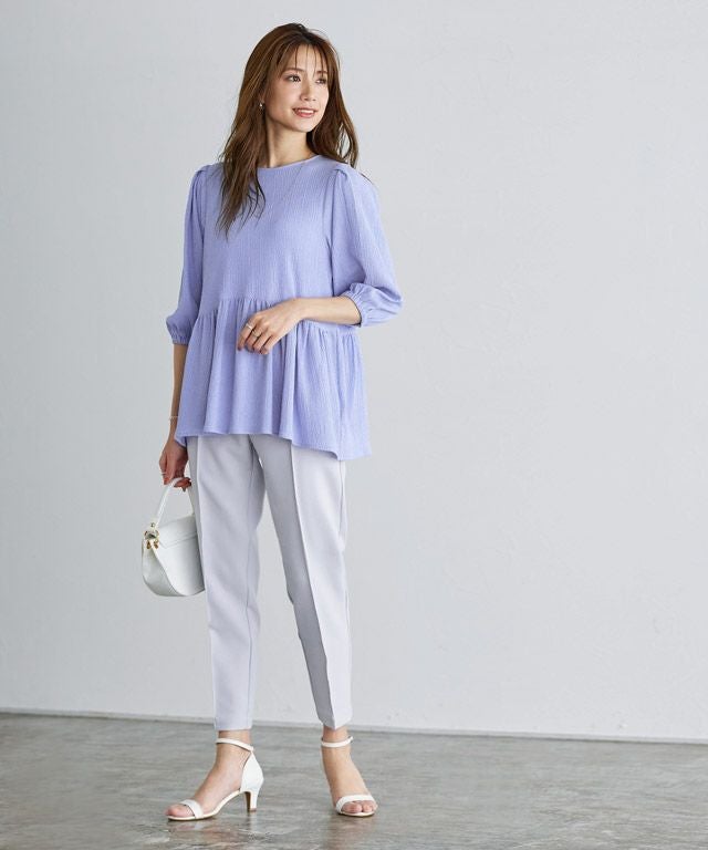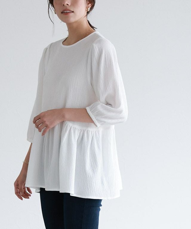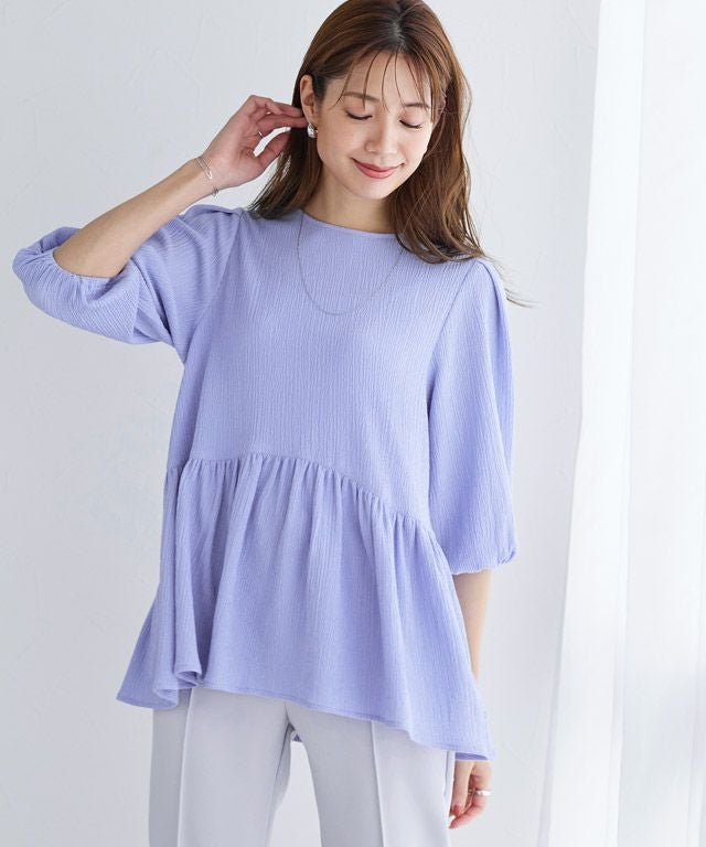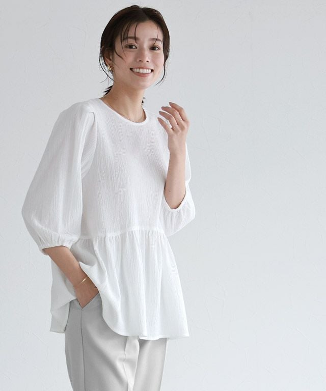 シボ感のある素材が表情をプラスし、涼しげな印象に。薄手で柔らかく軽い着心地です。