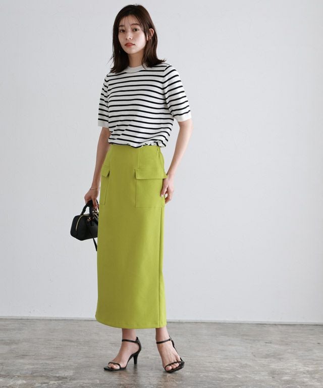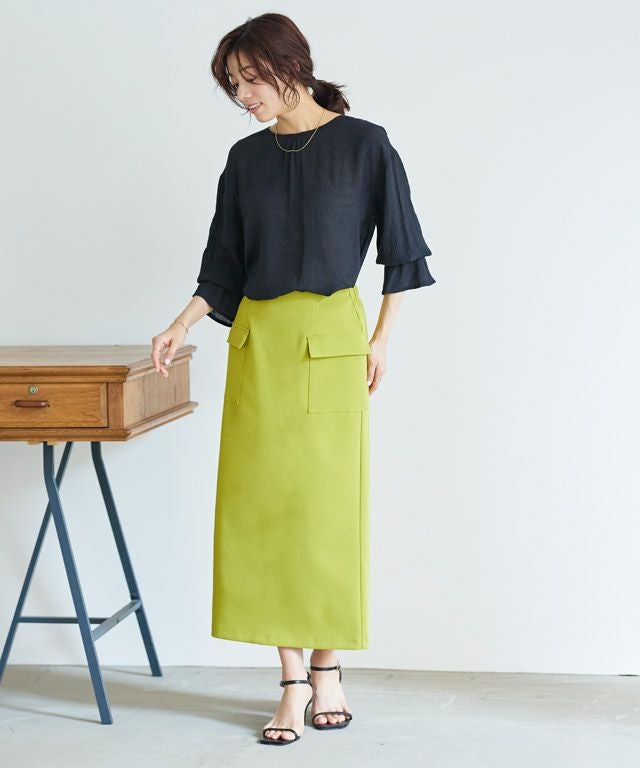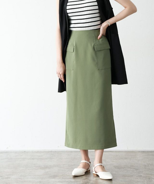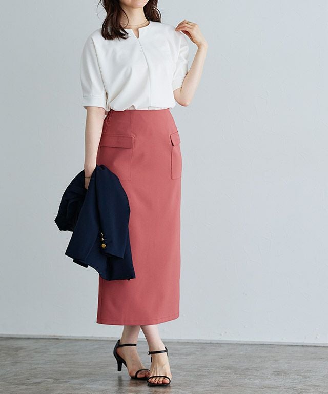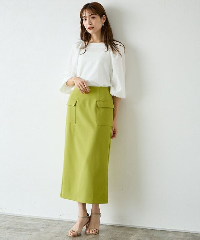 カラーがスタイリングのアクセント“サイドフラップポケットIラインスカート”