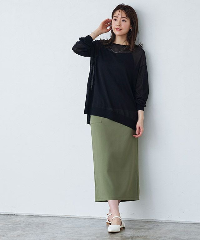 春にカラー物のスカートが欲しくて、ライムを購入。派手過ぎず可愛い色で、とても気に入りました。151cmの私でも足首が見える長さで、タイトですが、ヒップラインを拾わないのが嬉しい。ストレッチが効いて動きやすく、履き心地がいいです。