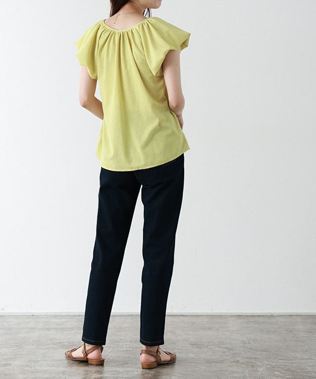 シボ感のある素材が表情をプラスし、涼しげな印象に。薄手で柔らかく軽い着心地です。