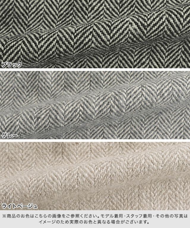 ウール混の暖かみのある風合いが魅力的で、ヘリンボーン柄がシーズンムードを高めてくれます。