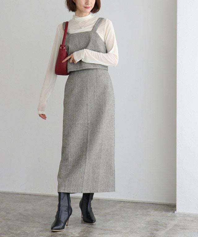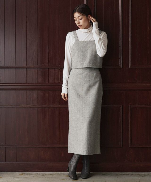 着映え感のある“ヘリンボーンビスチェセットアップ”