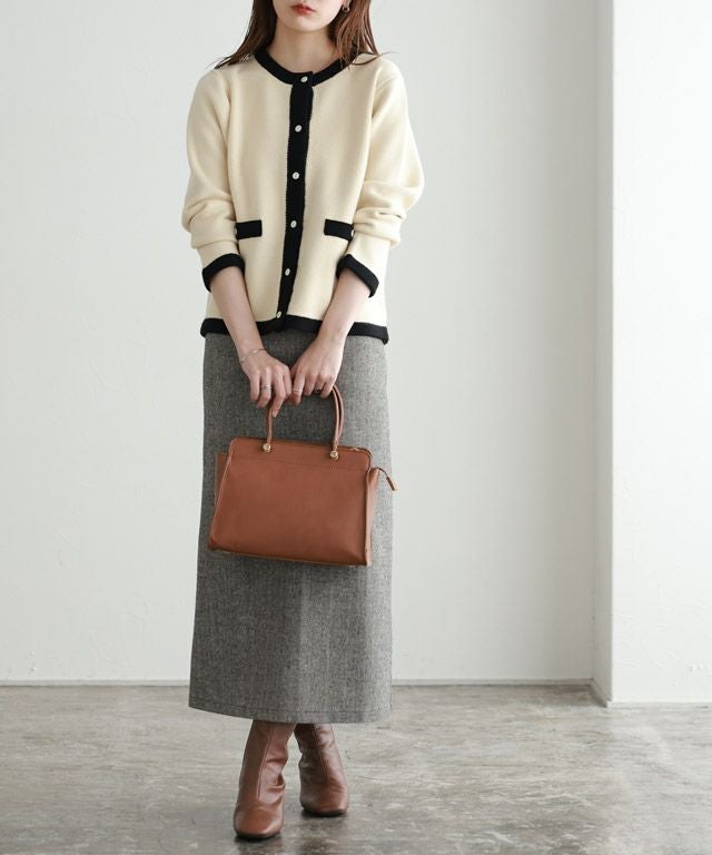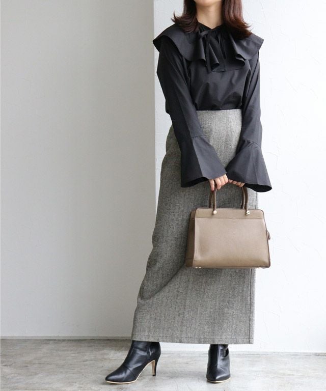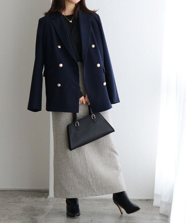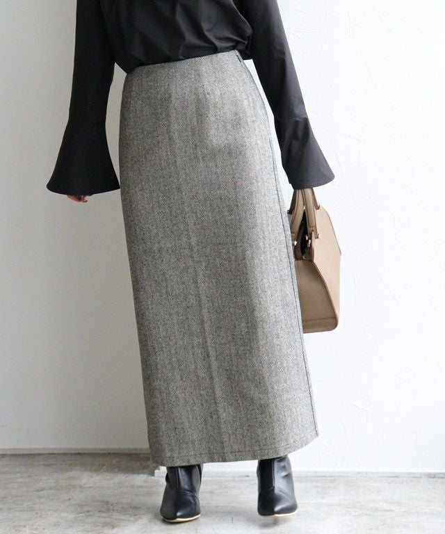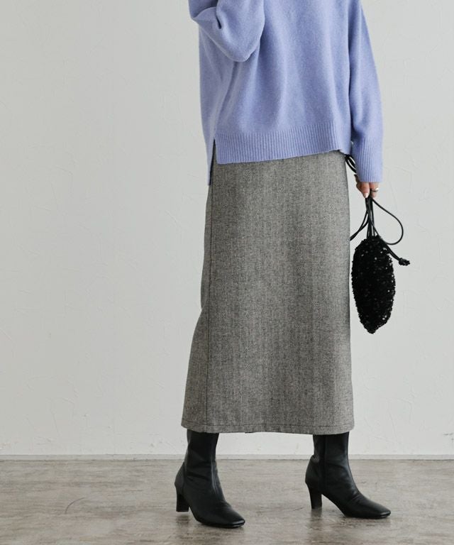 [スカート]着丈は足首が見える丈感でした。ウエストは程よくゆとりがあり、ヒップにはゆとりがあります。シーズン感のあるヘリンボーンで高見えします。スカートは程よくゆとりがあるので窮屈感なく着用できました。