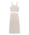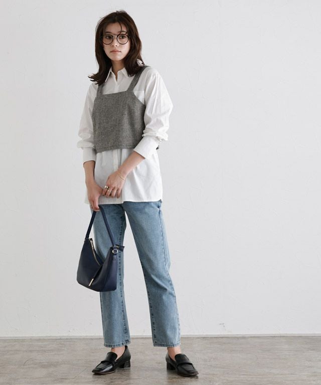 一気に旬なスタイリングへと導いてくれるビスチェ。太めの肩紐が程良いアクセントになり、クロップド丈がトレンド感をプラスしてくれます。スカートはシンプルに仕上げ、すっきりとしたIラインで女性らしい印象に。セットでの着用はもちろん別々でのコーディネートもお楽しみいただけます。