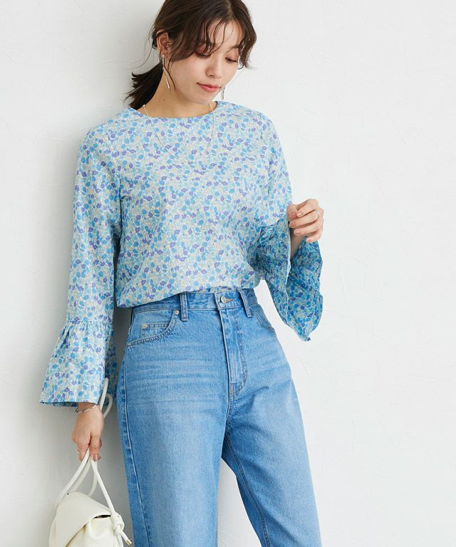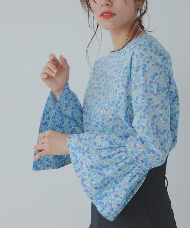 一枚で存在感のある“花柄ベルスリーブブラウス”
