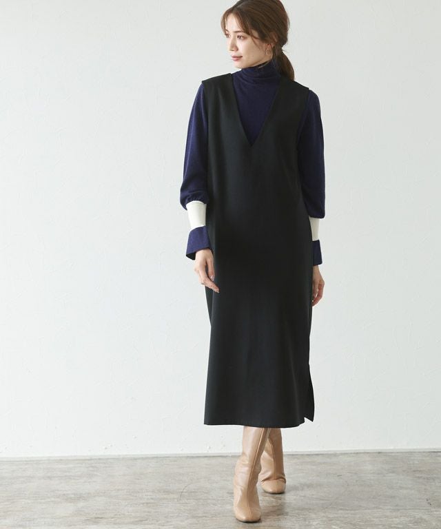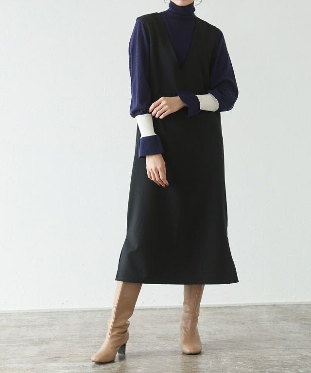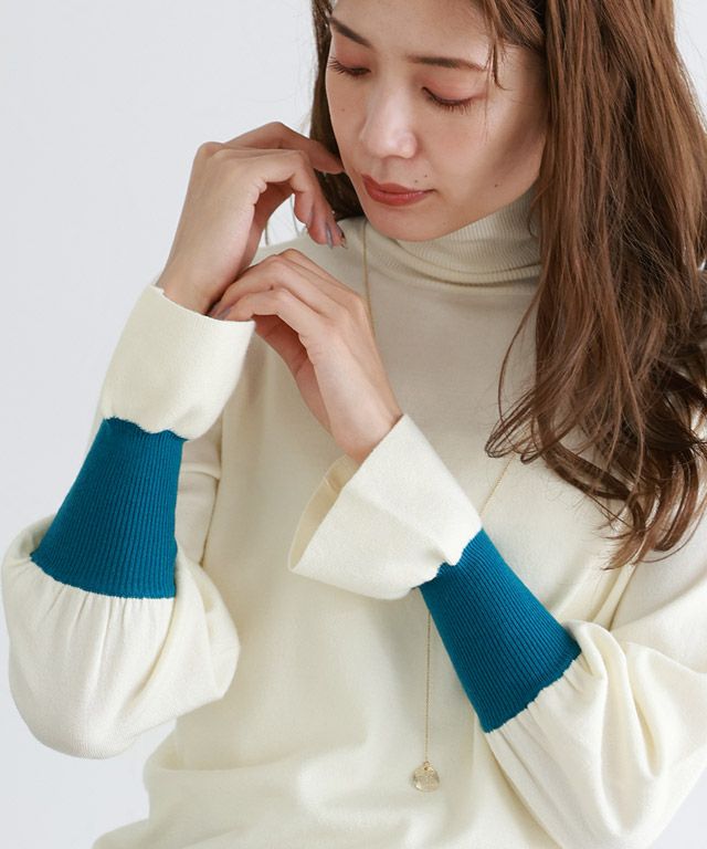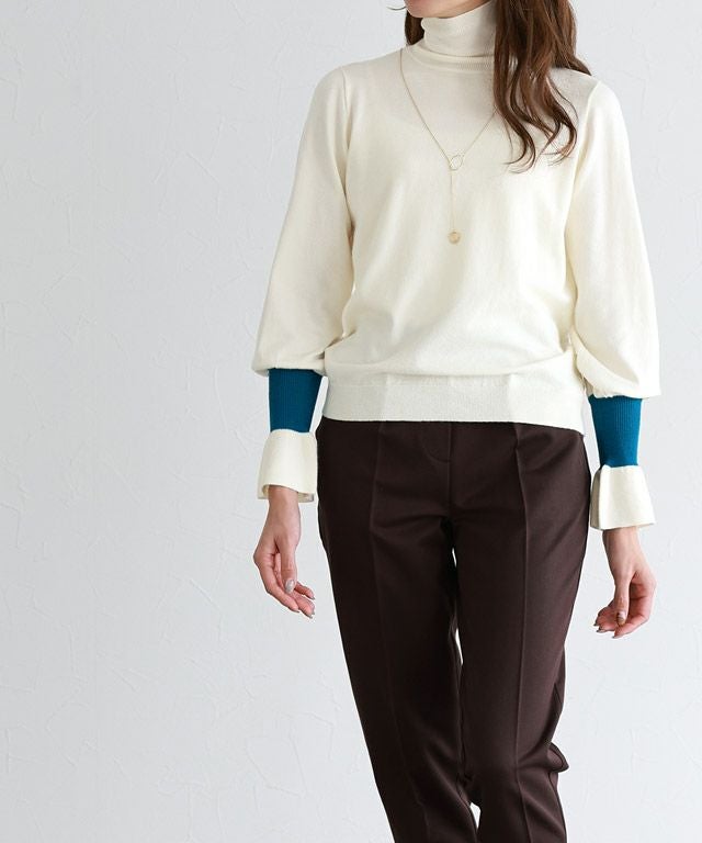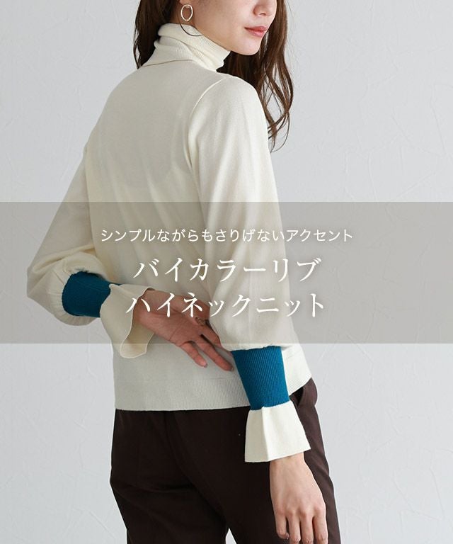 シンプルながらもさりげないアクセント“バイカラーリブハイネックニット”