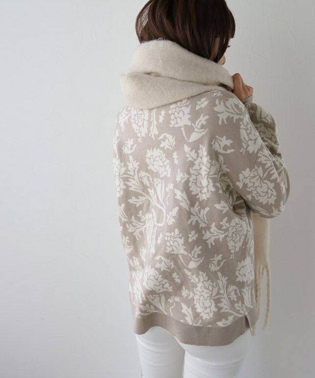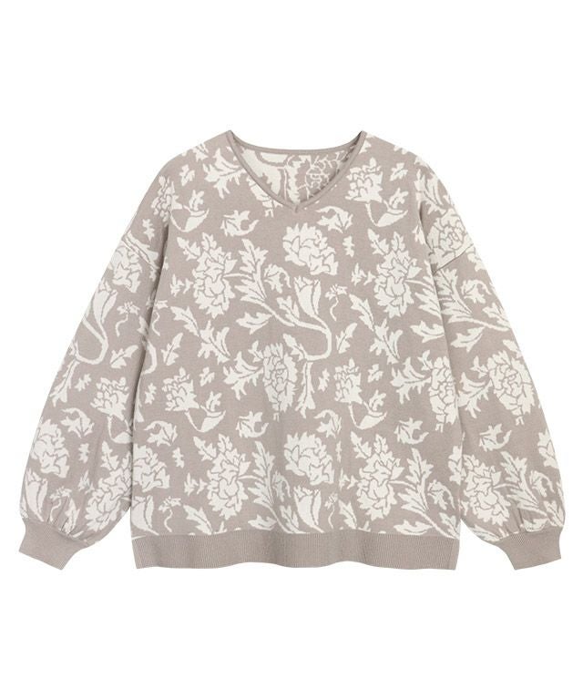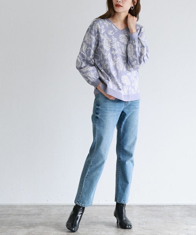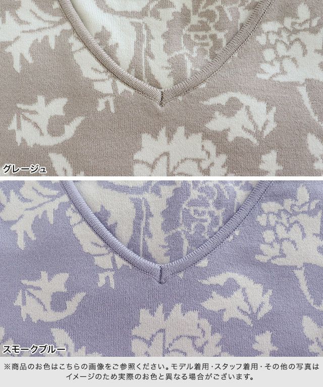 フラワージャカードVネックニット【スピード配送】