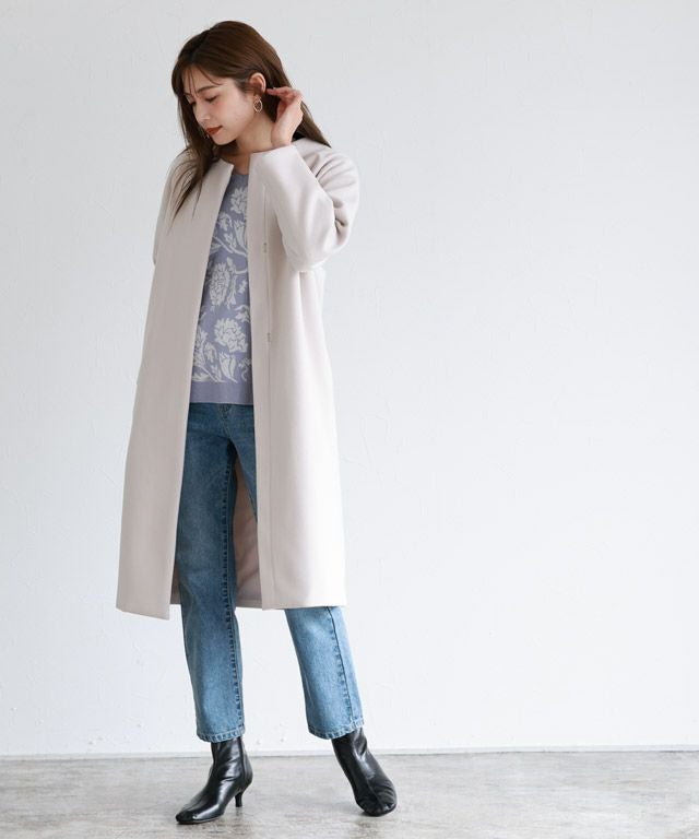 また、ニット製品は生産の過程上「生地を織る際の糸の継ぎ目」繊維の「混紡」、プレス加工、製品洗い加工によって形やサイズ(5cm前後)に誤差が生じる場合がございますが品質上の問題はございません。