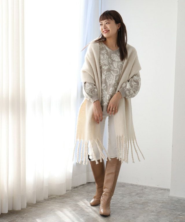 レトロスタイルが完成する“フラワージャカードVネックニット”