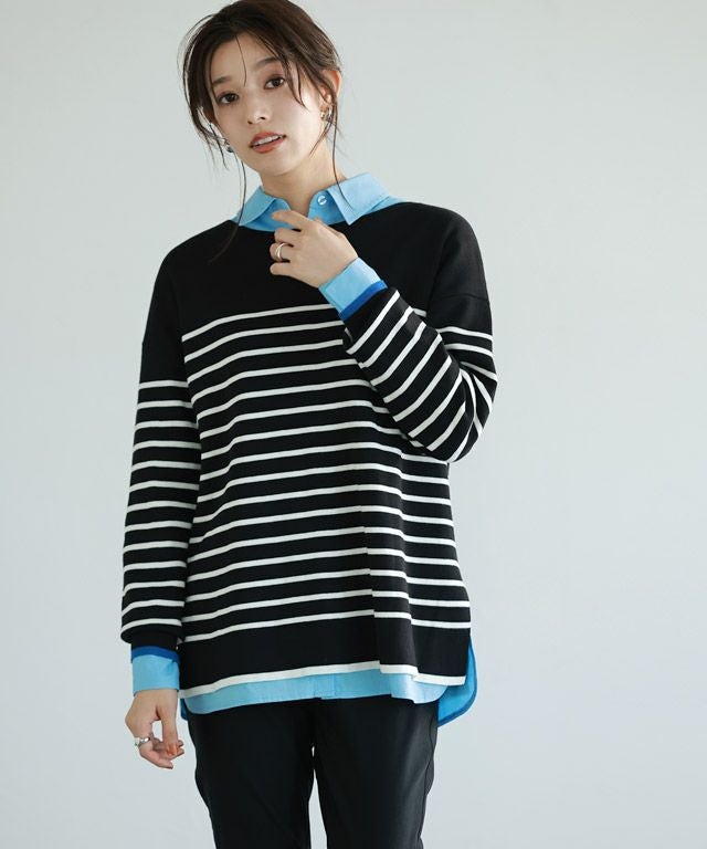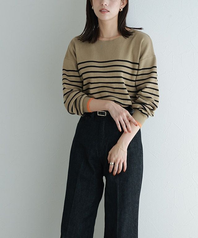 袖口にワンテク聞いた一枚“バイカラーリブボーダーニット”
