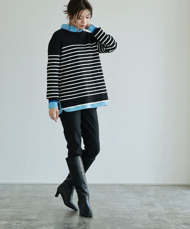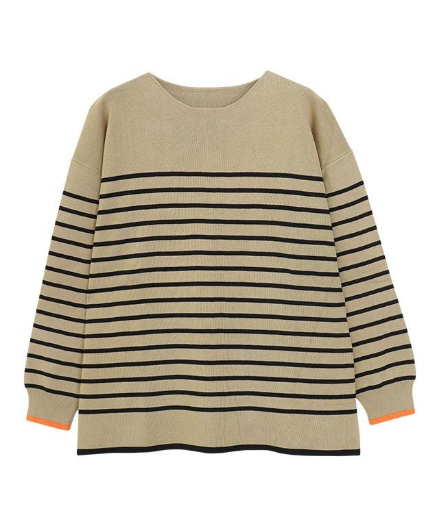 袖口に細めに入れた配色アクセントがスタイリングにカジュアル感をプラス。ボディーはゆとりを持たせたサイズがラフさを演出。程よく抜け感のあるボートネックデザインがデコルテラインを華奢に見せてくれるところも嬉しいポイントです。