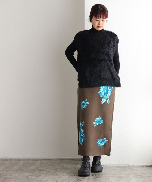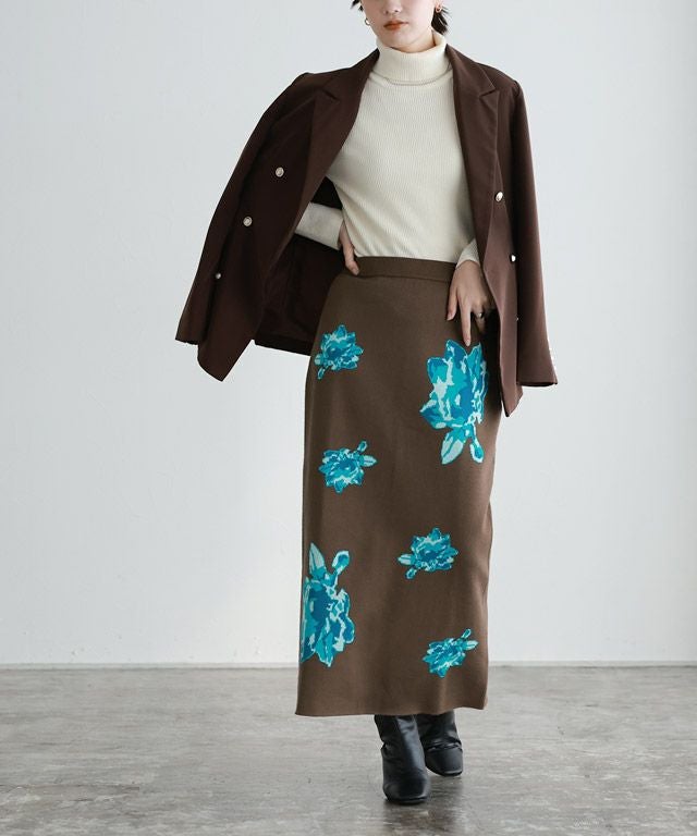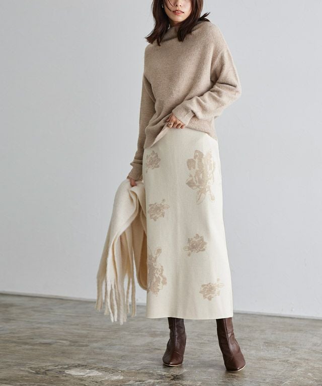 マンネリコーデにアクセント“花柄ジャカードニットスカート”