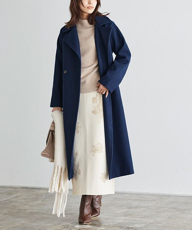 また、ニット製品は生産の過程上「生地を織る際の糸の継ぎ目」繊維の「混紡」、プレス加工、製品洗い加工によって形やサイズ(5cm前後)に誤差が生じる場合がございますが品質上の問題はございません。