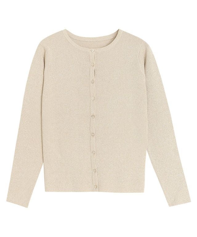 シンプルなクルーネックカーディガン。コンパクトなサイズ感で大人っぽくミニマルな印象に。袖が長めのデザインがトレンド感のあるスタイリングに仕上がります。