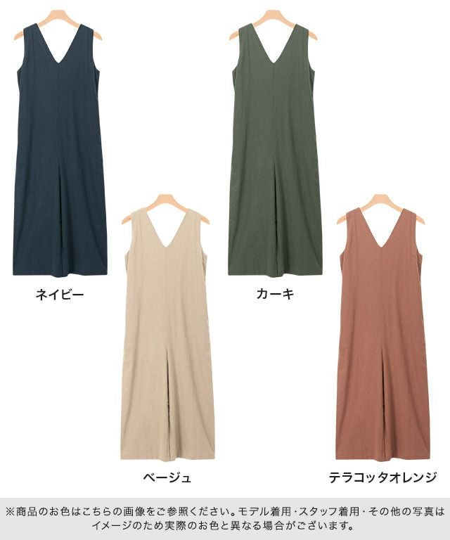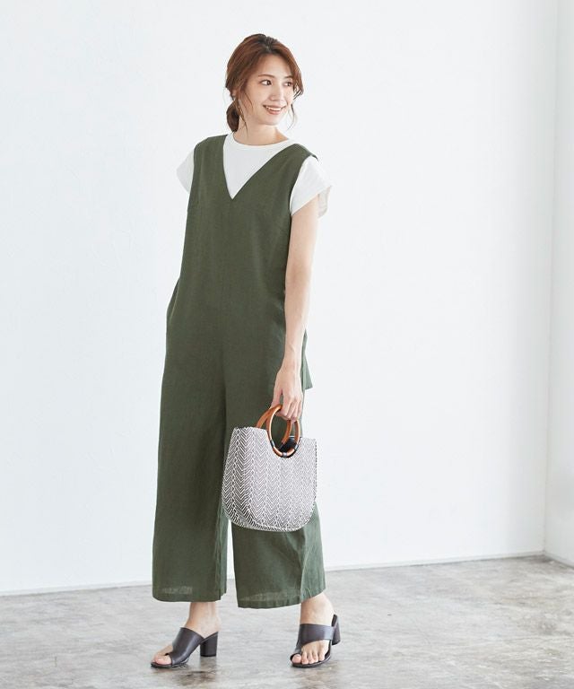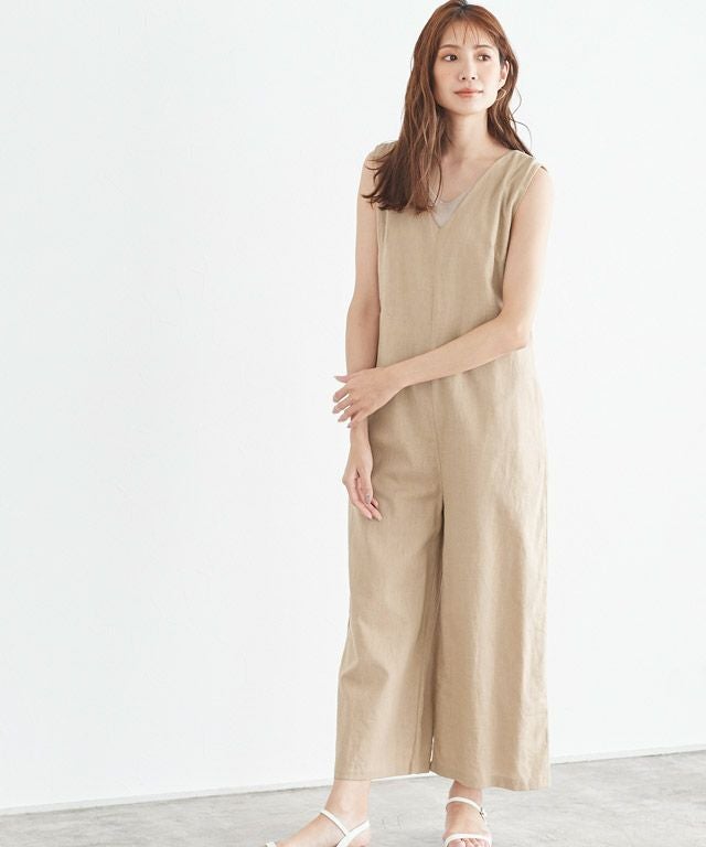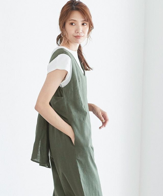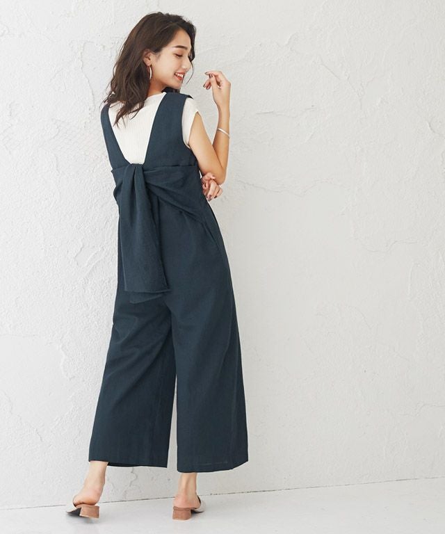 大人の抜け感を演出"バックリボン綿麻オールインワン"