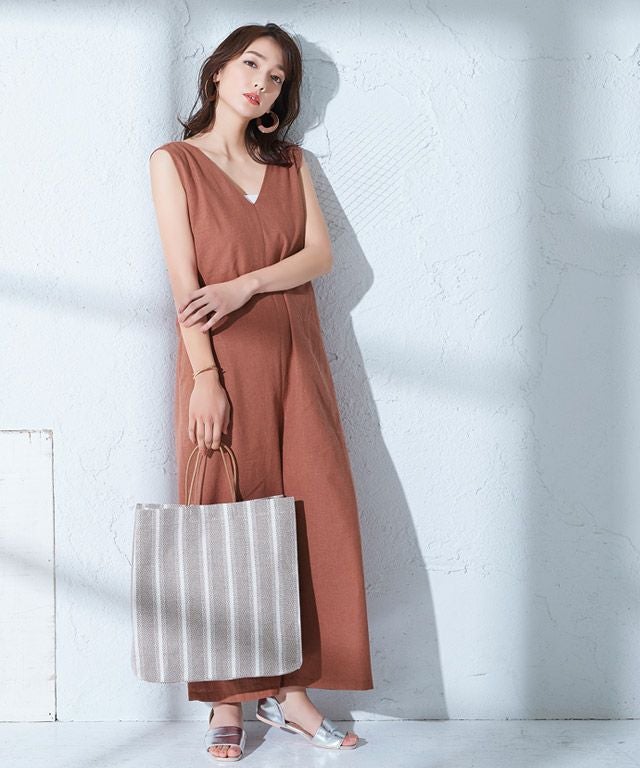 ゆったりとしたシルエットで体型カバーしつつ、オールインワンが1枚でもサマになるアイテム。