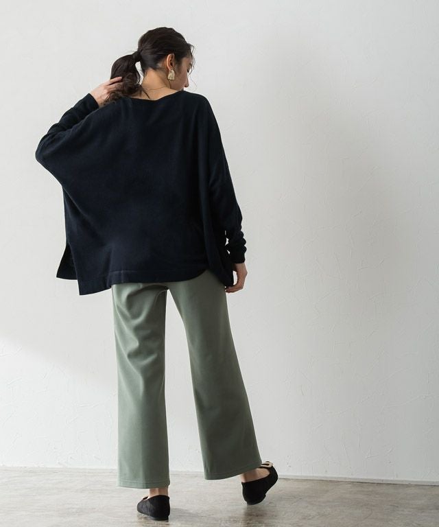 カシミヤのような滑らかな肌触りで素肌に優しい風合い。チクチクしないストレスフリーな着心地が魅力です。少し肉厚でふんわり感のある生地が、大人に嬉しい高見えを叶えます。ご自宅でお洗濯が可能なウォッシャブル素材なので、気兼ねなくお使いいただけます。