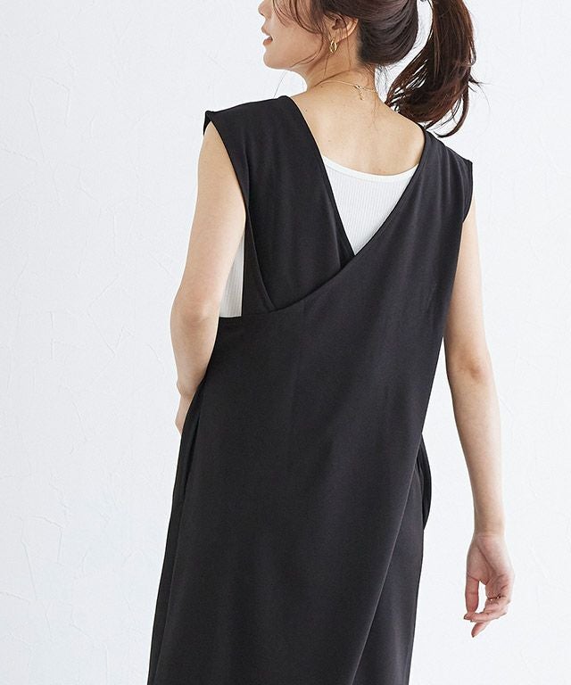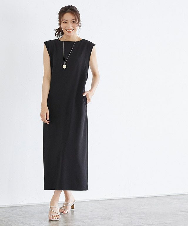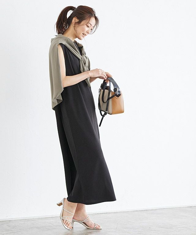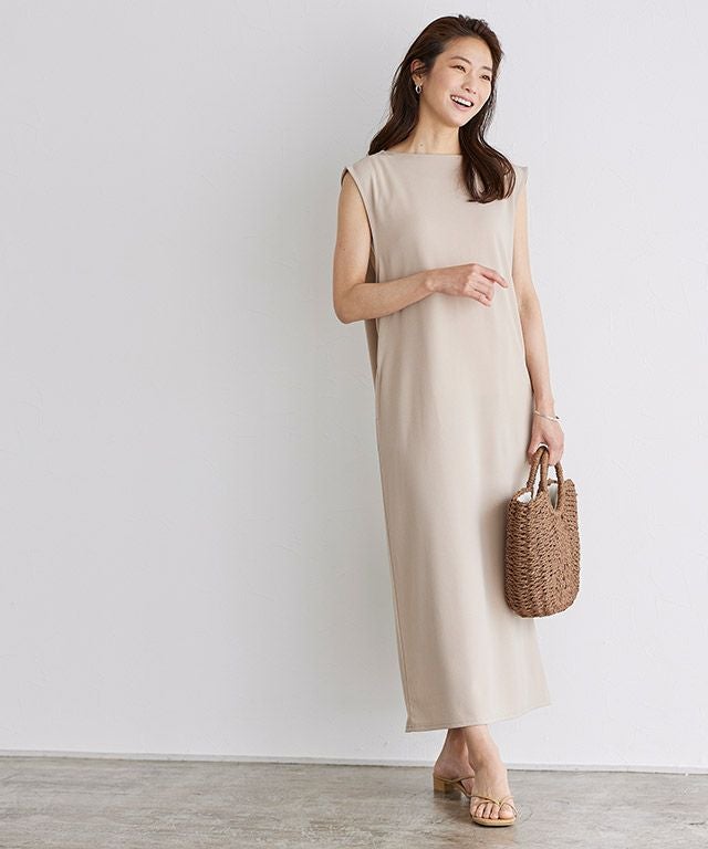 着丈は足首が少し見える丈感でした。肩周りを程よくカバーしてくれるノースリーブです。伸縮性のある生地で柔らかいです。