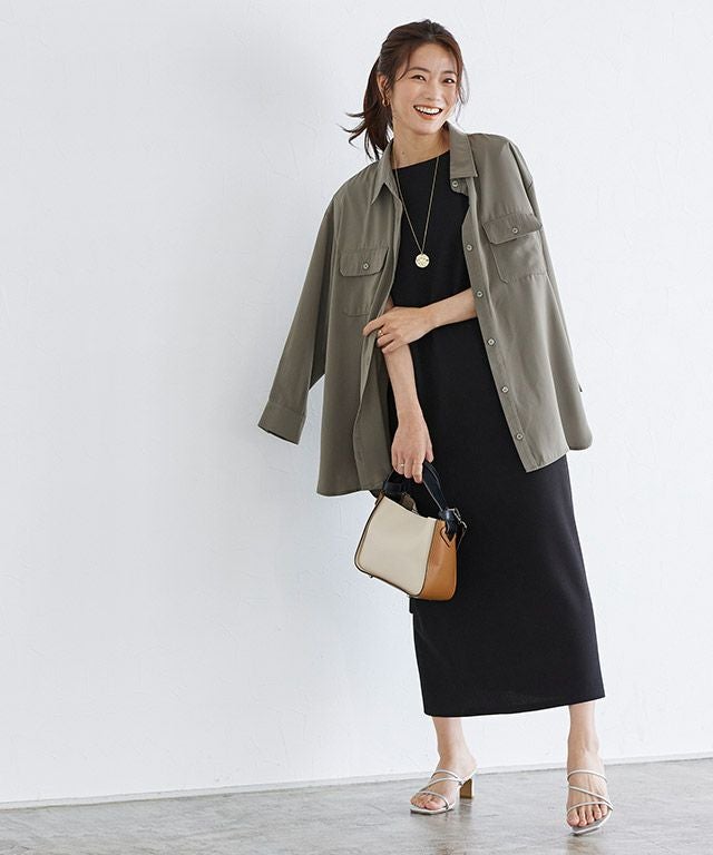フロントはシンプルなIラインが大人らしい上品さを演出。バックにラップデザインを施すことで、シーズンムード漂う涼しげな仕上がりに。セットのインナーは表情のあるリブ素材にすることでアクセントになります。