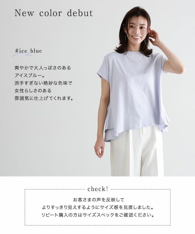 大人気の“バックフリル切り替えTシャツ”が今シーズンも登場!お客様の声を反映して、よりすっきり見えるようにサイズ感を見直しました。