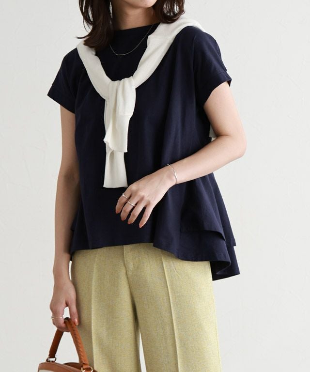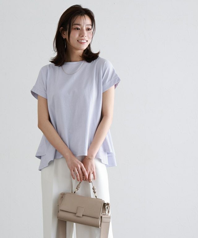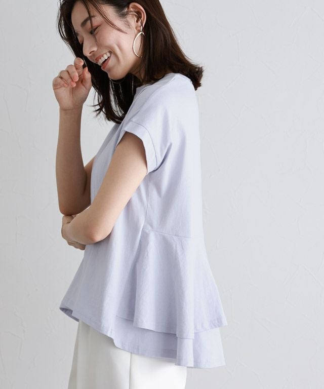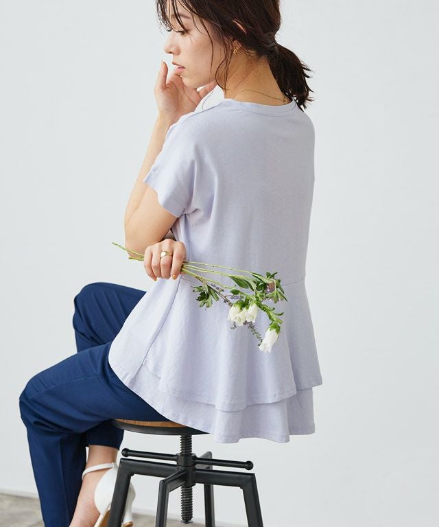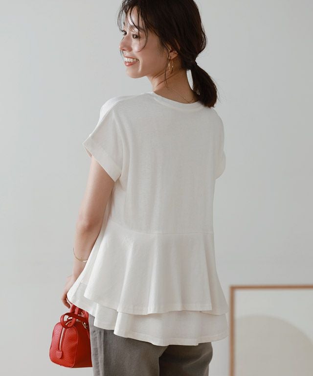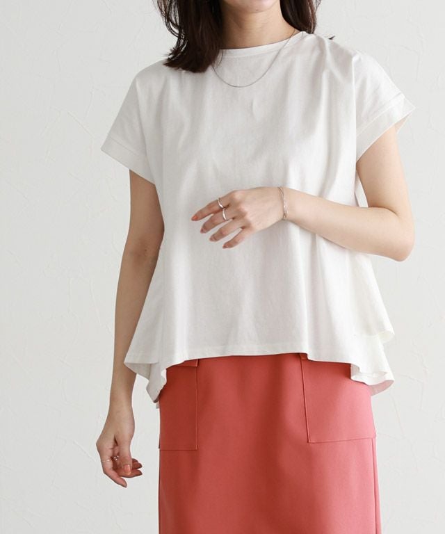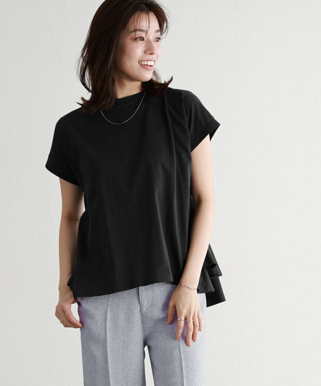 フェミニンなバックスタイルがサマ見え“バックフリル切り替えTシャツ”