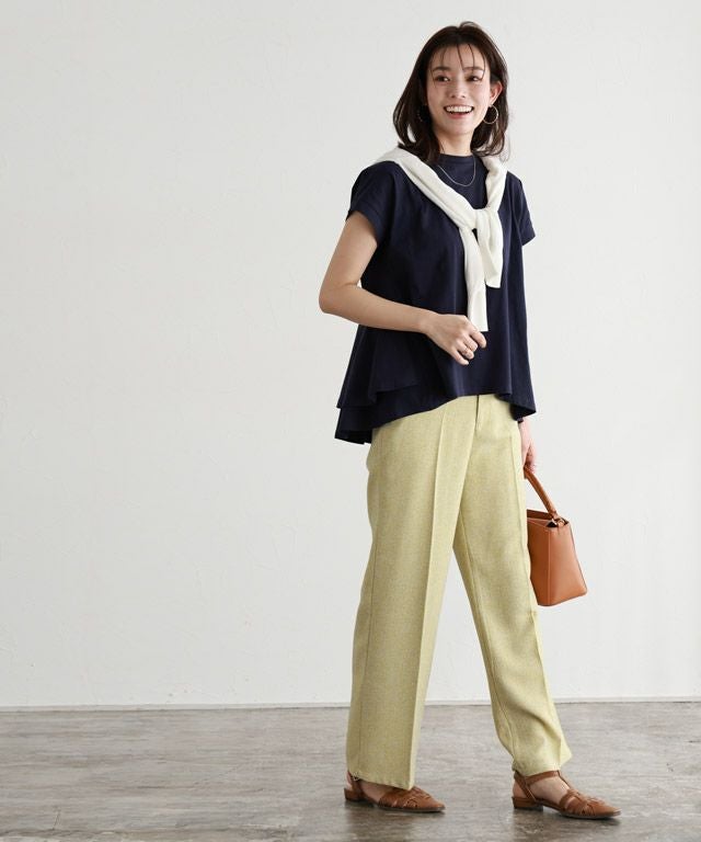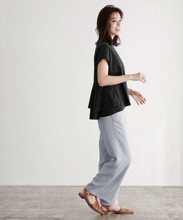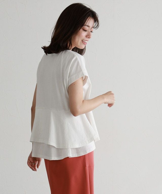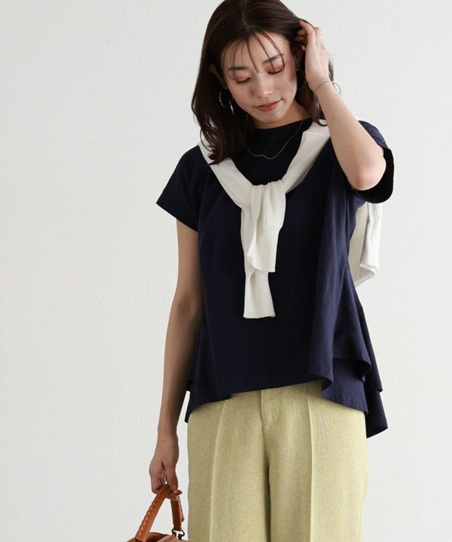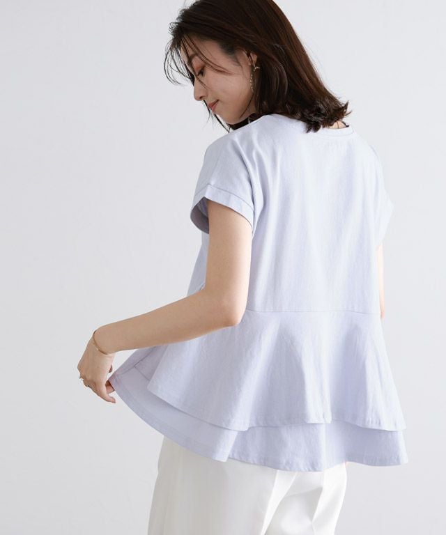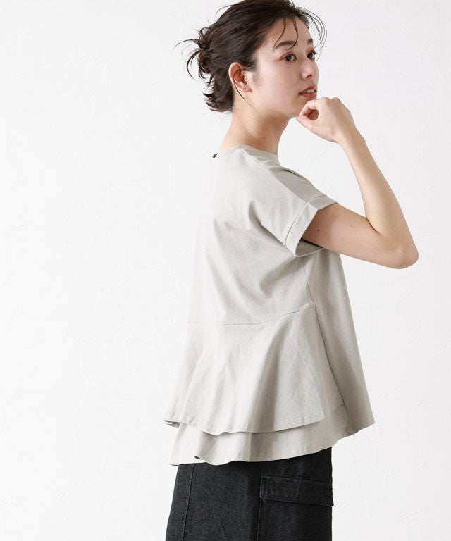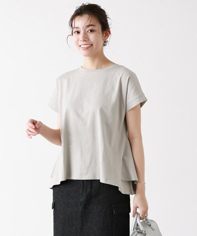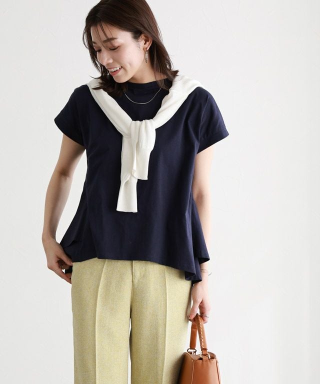 フェミニンなバックスタイルがサマ見え“バックフリル切り替えTシャツ”