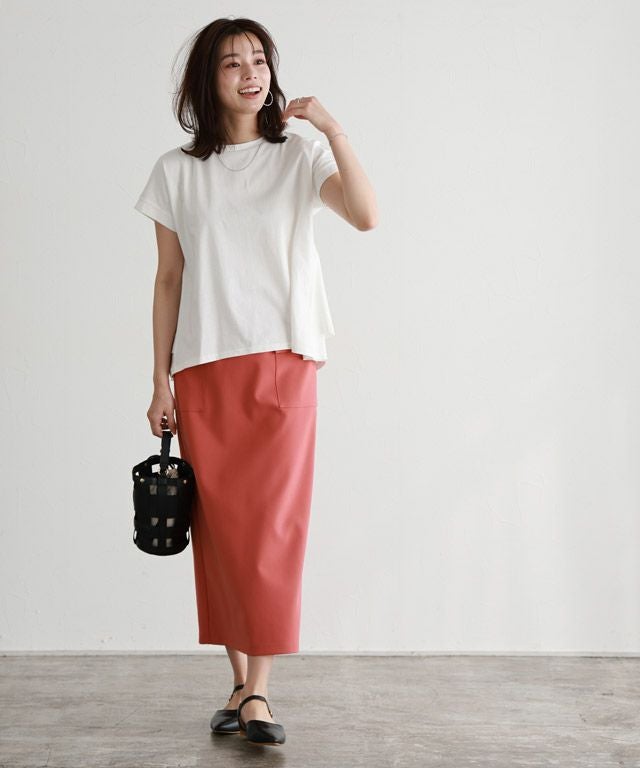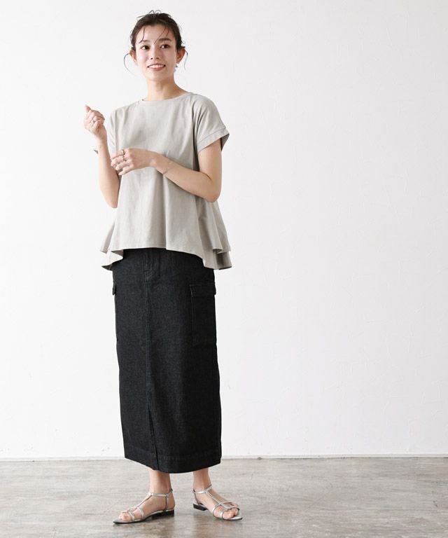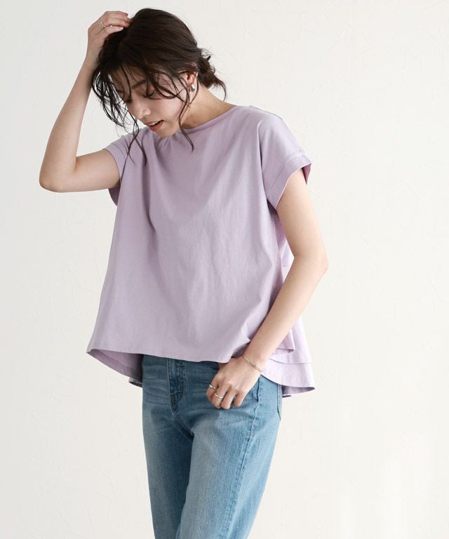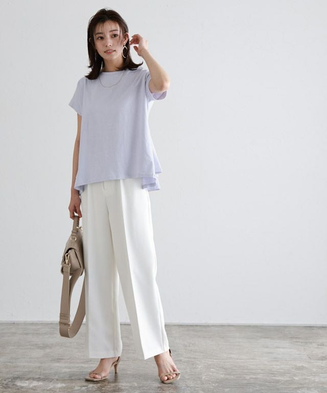 柔らかく滑らかな肌触りの綿100%素材なので、着るだけでぐっと大人な雰囲気に。程良くしっかりとした質感で薄すぎず厚すぎない生地は、デイリー使いに最適です。 フロントシルエットはシンプルなTシャツですが、バックにフリルを施したデザインがフェミニンな印象に。一枚でサマ見えするデザインTシャツです。
