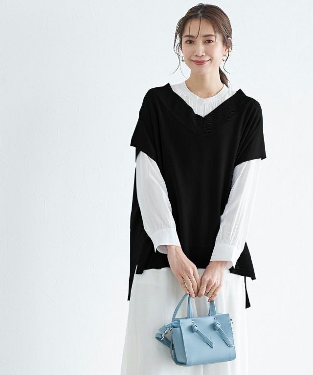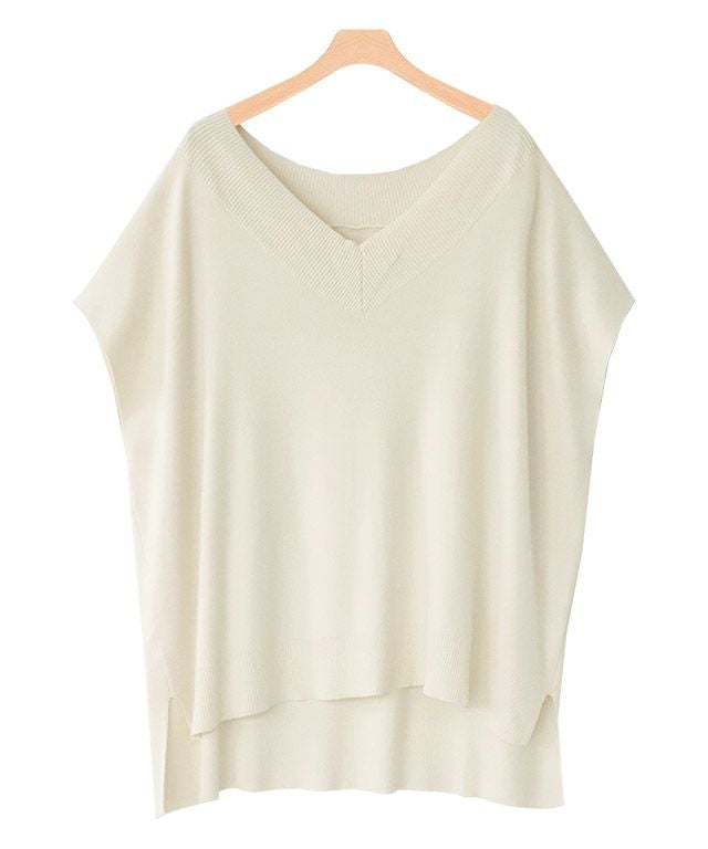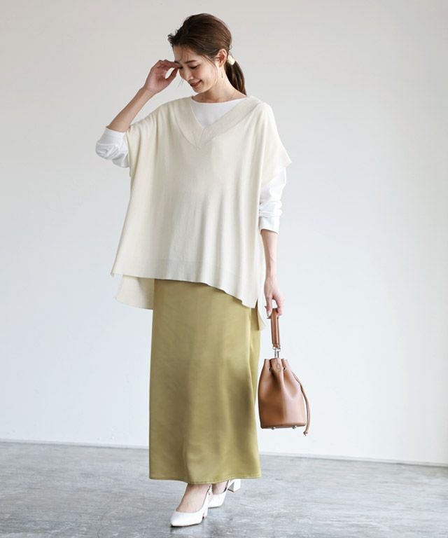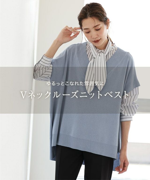 たっぷりとルーズなサイジングが、こなれた雰囲気のニットベスト。深めのVネックがインナーを選ばず、合わせやすいデザインに仕上げました。合わせるインナー次第で、シーズンレスで着用できる優秀アイテム◎