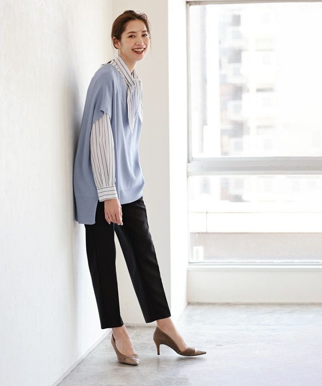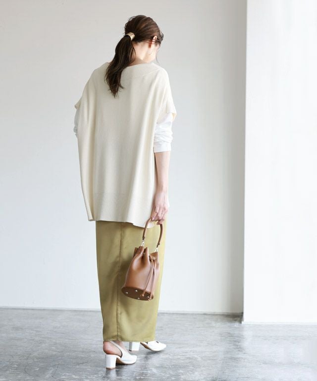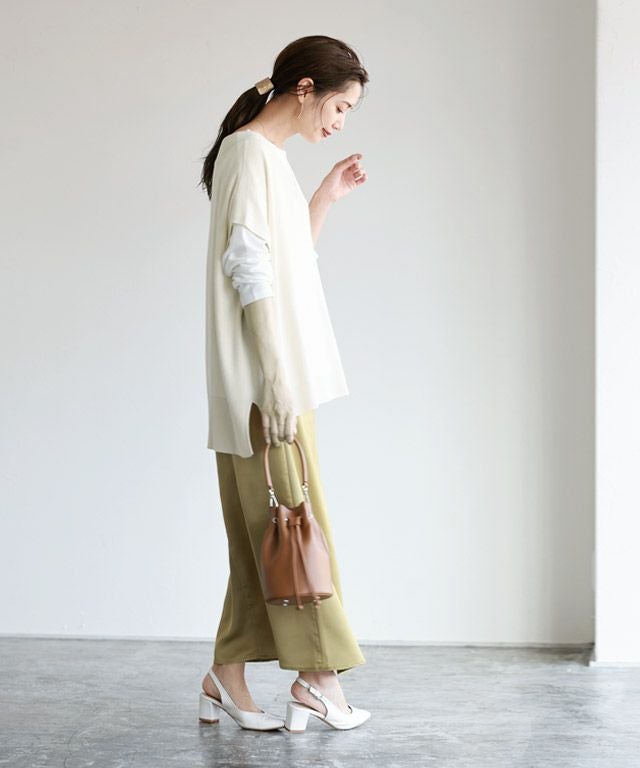 レーヨン混でしっとり滑らかな肌触りのニット。落ち感があり女性らしい雰囲気を漂わせます。薄手でインナーを合わせやすいところもポイントです。