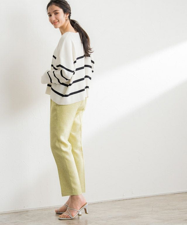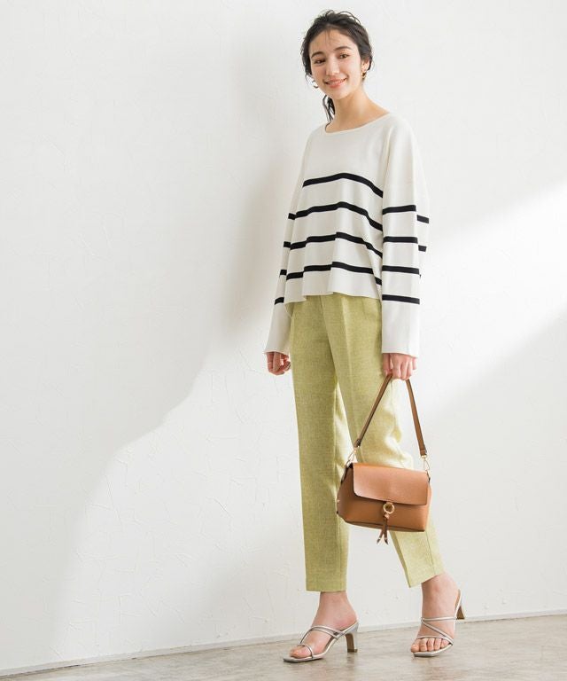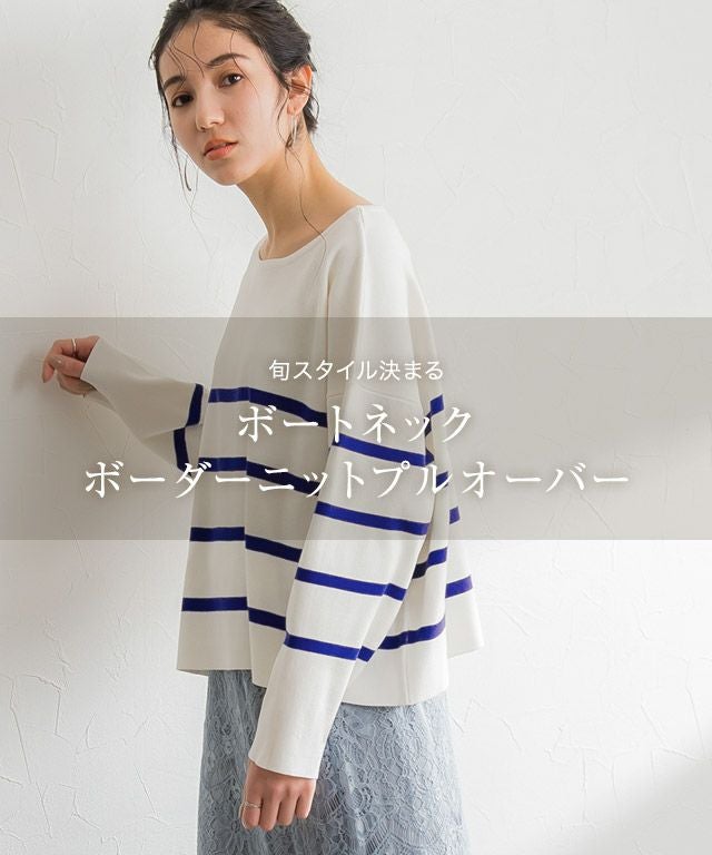 旬スタイル決まる“ボートネックボーダーニットプルオーバー”