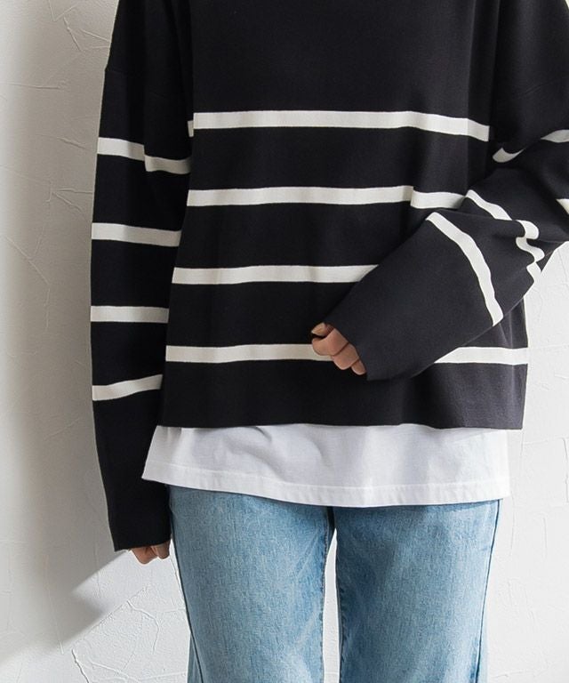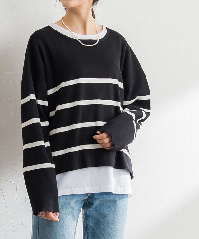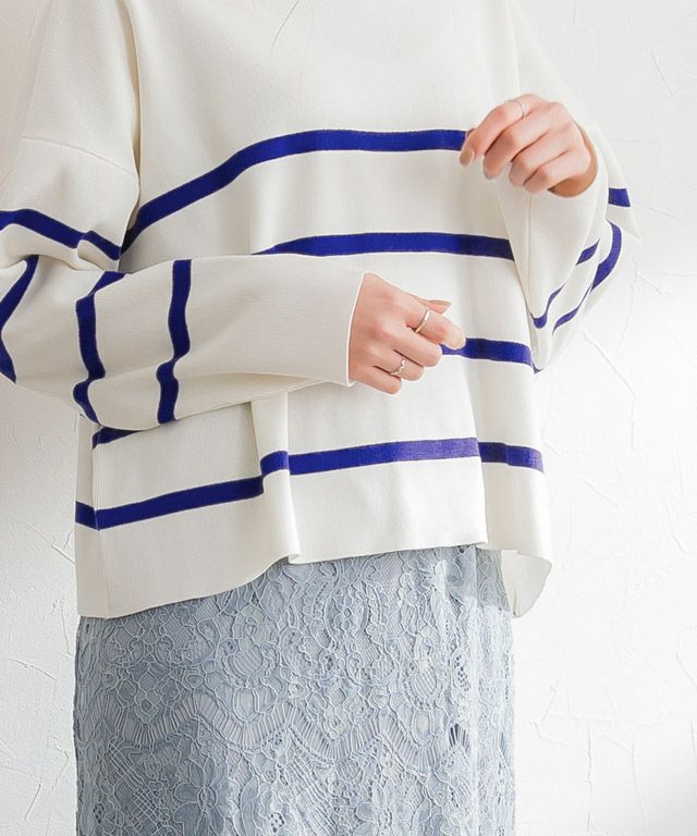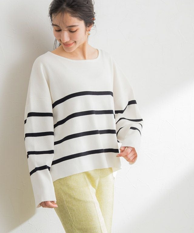 ボートネックボーダーニットプルオーバー【スピード配送】