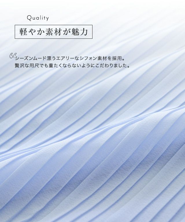 シーズンムード漂うエアリーなシフォン素材を採用。贅沢な用尺でも重たくならないようにこだわりました。