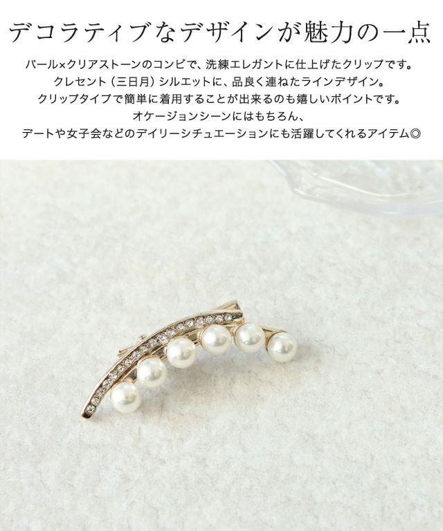 ヘアにも女性らしさをプラスする“パールストーンクレセントヘアクリップ”