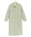 すっきりとした印象に見せてくれるノーカラーデザインに、フロントはドットボタンを付けアクセントを加えたコート。裾に向かってすとんと落ちるシルエットと、シンプルなディテール使いでON/OFF問わず使えるように仕上げました。