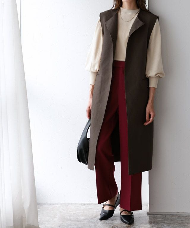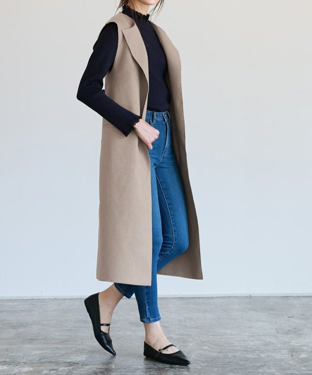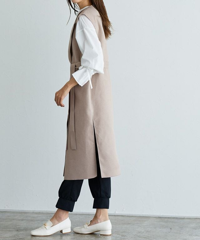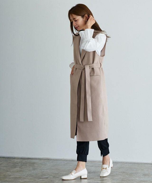 いつものコーディネートをアップデート“ダブルフェイスベルト付きロングジレ”