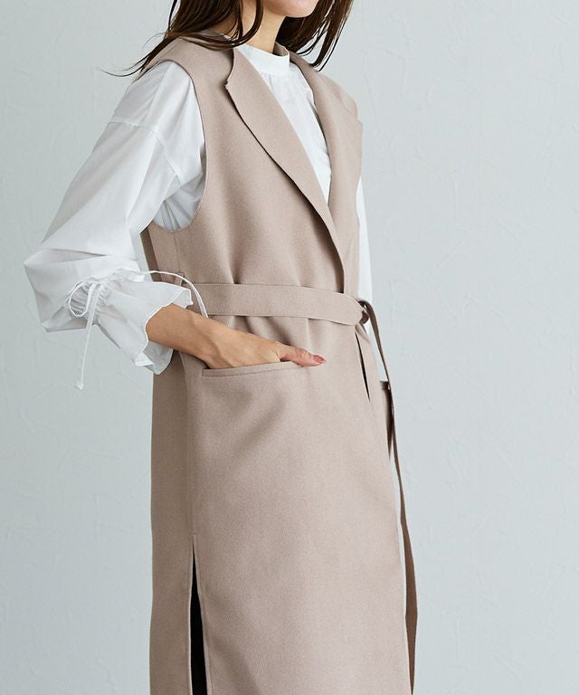 ダブルフェイスベルト付きロングジレ【スピード配送】