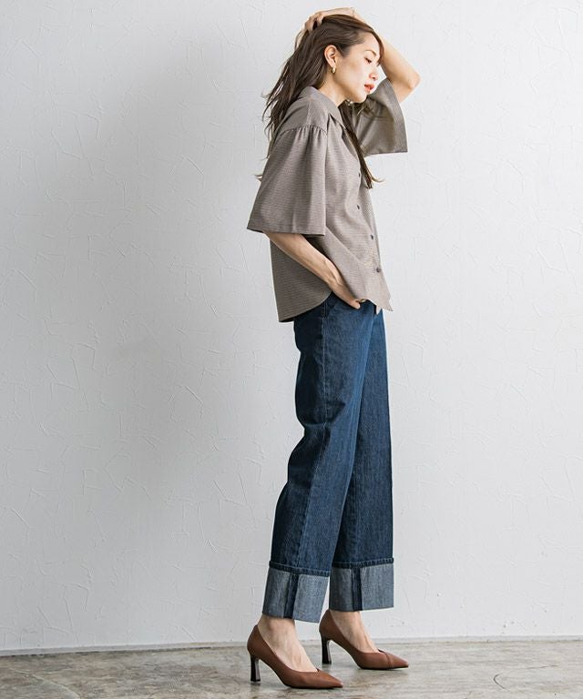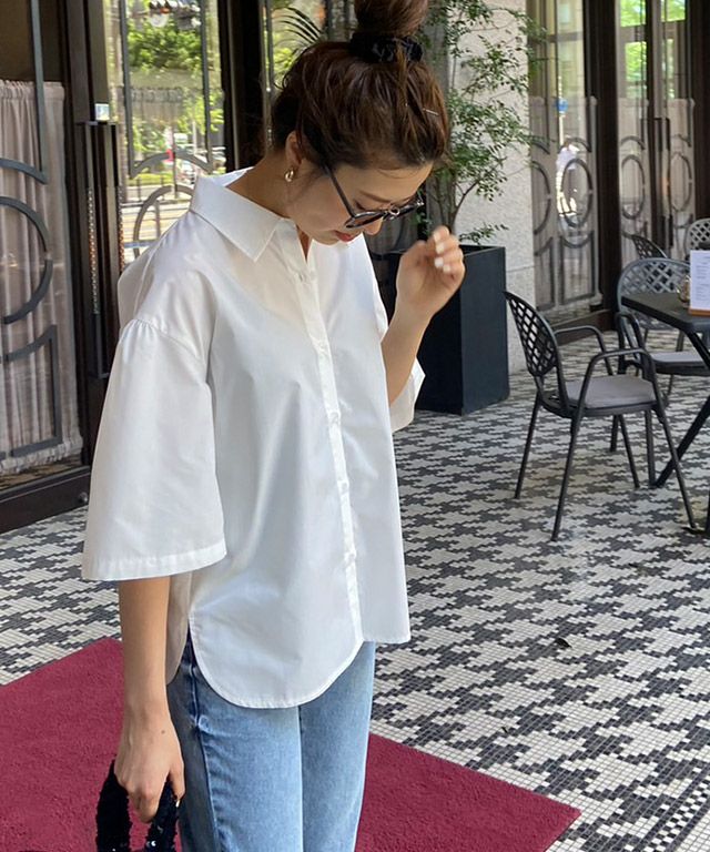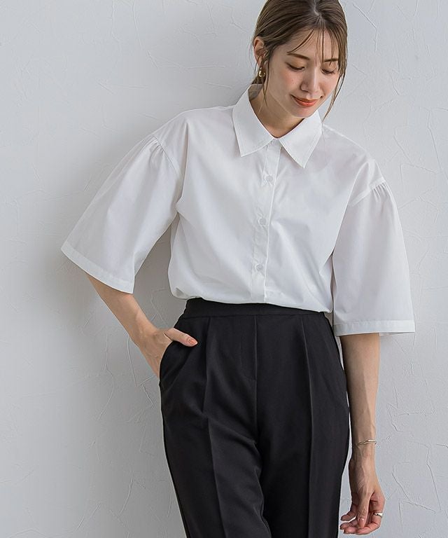 一枚で着映え感のある“襟付きフレアスリーブシャツ”