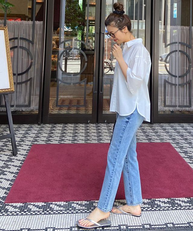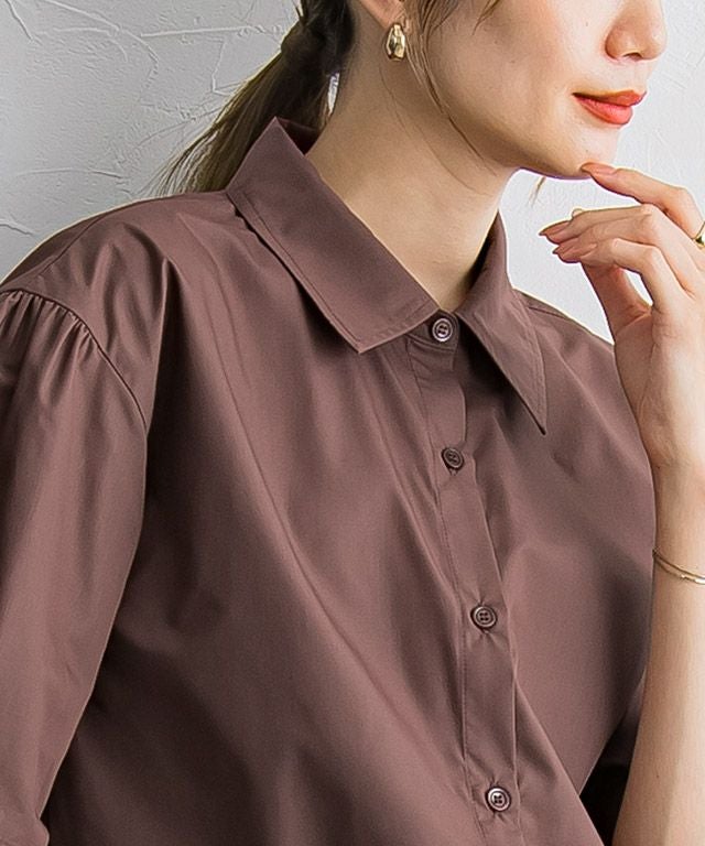 襟付きがきちんと感を演出してくれて、肩に施したギャザーでふんわりとした袖を演出し、気になる二の腕周りもカバーしつつ、女性らしい印象に導きます◎ボトムスを選ばない丈感に仕上げ、裾のラウンドカットがインをしなくてもこなれた装いになるようにしました。