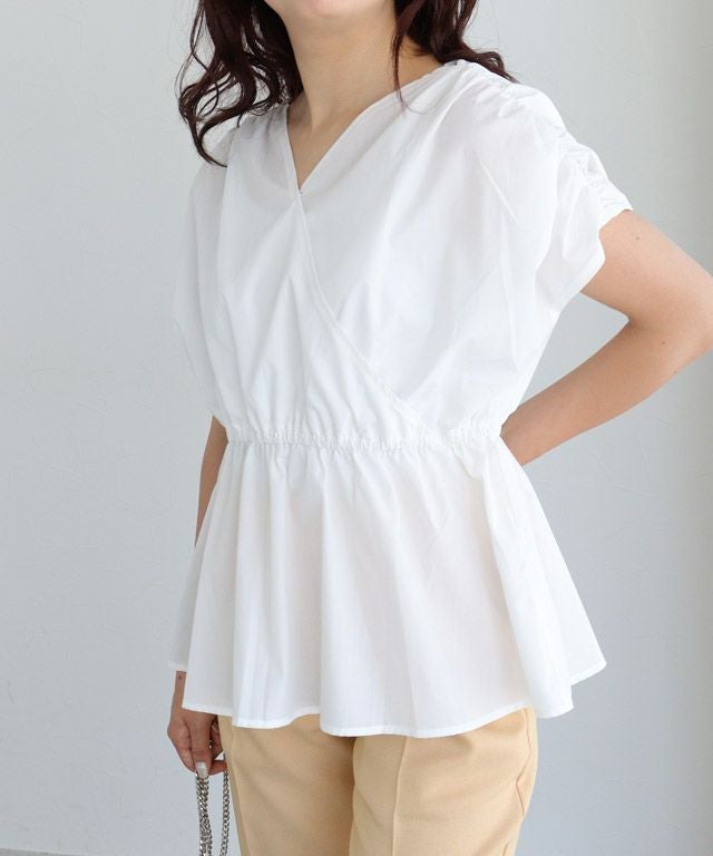 一枚で着映え感のある“カシュクールペプラムブラウス”