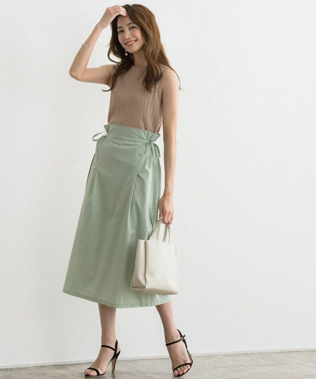 サイドリボンデザインがシンプルながらもこなれ感もあり、すっきり見えする一枚。ウエストはリボン仕様で調節が可能なのも嬉しいポイント。